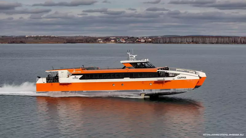Проект HSC150B — настоящий технологический прорыв: катамараны выполнены из высокопрочного алюминиево-скандиевого сплава (1581), с применением облегчённых сварных СКО-панелей. Это позволило снизить вес надстройки на 7,2%, сократить расход топлива на 40%, а увеличить полезную нагрузку на 8%. По своим характеристикам «Сарма» впечатляет: до 148 пассажиров, имеет длину около 37 м, ширину — порядка 11-11,4 м, экипаж из 4 человек и дальность хода до 1000 км при скорости около 65 км/ч. Малая осадка (0,9-1,25 м) позволяет причаливать даже к необорудованному берегу — так пассажиры могут напрямую высаживаться в укромных уголках Байкала. Кроме того, судно особенно экономично — по сравнению с традиционными СПК-катамаранами оно расходует на 40% меньше топлива и вмещает на 8% больше — всё благодаря конструкции волнопронизывающего корпуса и динамической разгрузке подводными крыльями.